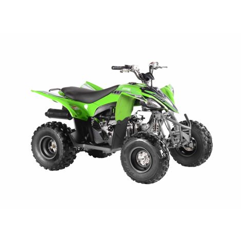 THE Gizmo 120 features a trendy sport quad style that looks fast even when standing still! You get a smooth CVT transmission with front and rear disc brakes. a color-matched high-strength tubular steel frame with a protective front bumper and real headlights. Generous front and rear suspension features preload-adjustable spring-loaded shock absorbers offering up to 4 inches of ground clearance. Shod with sturdy 18-inch rims wrapped in an aggressive off-road tread, the youth mountain bike Gizmo 120 EFI is equipped for fun on your private land. Perfectly sized for young people and teenagers.