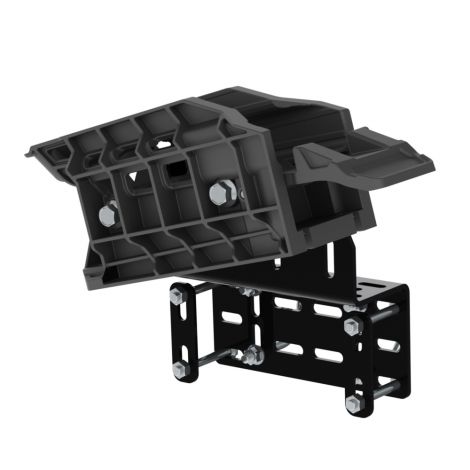 Engineered steel bracket for precision angling and attachment to vehicles.