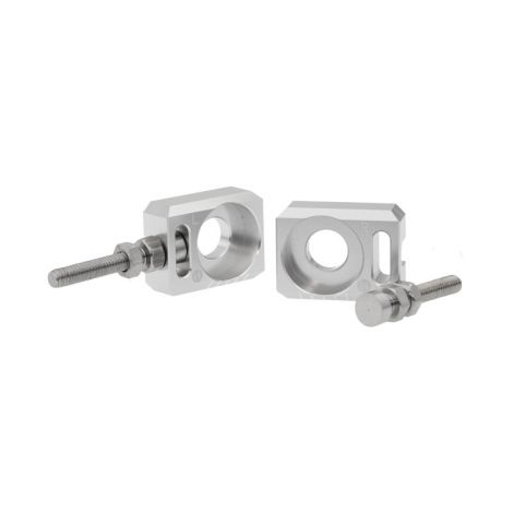 6061 T6 aluminum. The bolts are made of stainless steel. Function: Turn the adjusting bolt to move the axle block forward or backward to adjust the chain tension. Compared with the original one, our chain adjuster is more beautiful and convenient. Added L/R left and right marks and adjustment scale lines. The bolt and axle block can be moved at the same time for easy adjustment